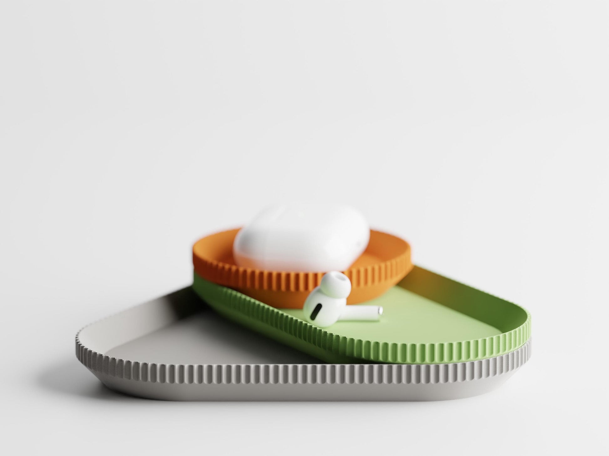 Stack them. Rotate them. Align them neatly or arrange them playfully like stepping stones across your desk or dresser. Each tray nests into the next with soft curves and contrasting color options to add depth and dimensionality. In the configuration shown here, the composition tells a storyof layers, movement, and personal organization.
